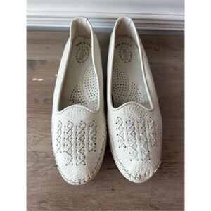 Vintage Dexter Leather Slip-on Flats White 10 Nautical Comfort
