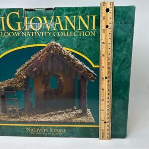 Vintage DiGiovanni Christmas Creche Holiday Nativity Stable Wood Moss Accent