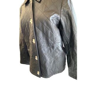 Vintage Dialogue QVC Style Diamond Stitch Black Leather Jacket Women’s M