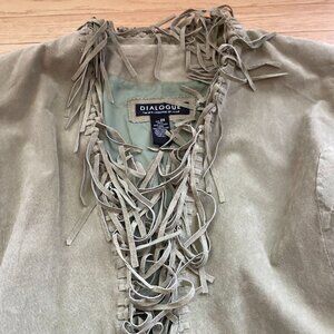 Vintage Dialogue Suede Leather Fringe Open Front Jacket Women's SZ 2X Moss Green