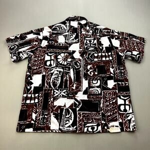 Vintage Diamond Head Hawaiian Shirt Adult XL Brown Surf Beach Tribal Button Up 60s