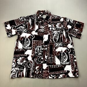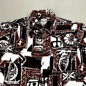 Vintage Diamond Head Hawaiian Shirt Adult XL Brown Surf Beach Tribal Button 60s