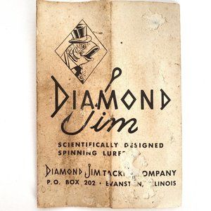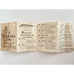 Vintage Diamond Jim Tackle Company Scientifically Designed Spinning Lures Insert Brochure - 9 Reasons Why Diamond Jim Lures Catch More Fish.