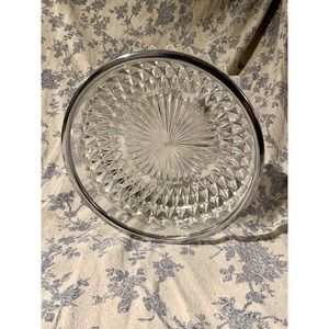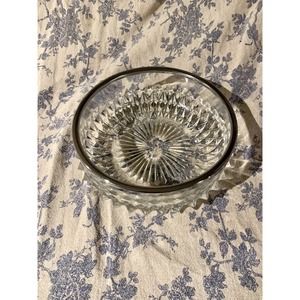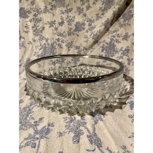 Vintage Diamond Point Crystal Bowl with Silver Plated Rim Celtic Made in England