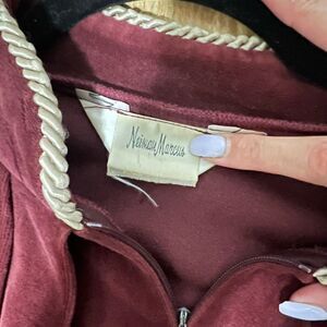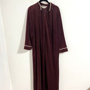 The Vintage Neiman Marcus Diamond Tea Luxury Zip Robe is a luxurious burgundy velvet house coat designed specifically for petite women.