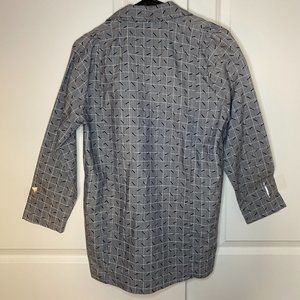 Excellent condition vintage Diamond's Run geometric 80s-90s print lightweight blazer shirt jacket with button closure. Material is lightweight and feels like cotton or a cotton blend. Size not listed but fits a size S-M. Some areas of minor discoloration. See photos.