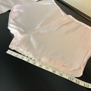 Diana Hand Embroidered soft Pink vintage satin intimates Set. Shorts and spaghetti straps top, sz M(runs smaller)