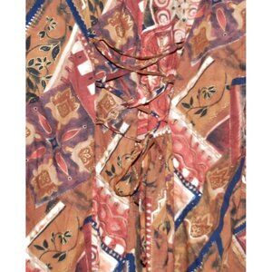 Vintage Diana Marco Brown Maxi Dress Size 22 Patterned Long Sleeve Ethnic Retro