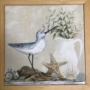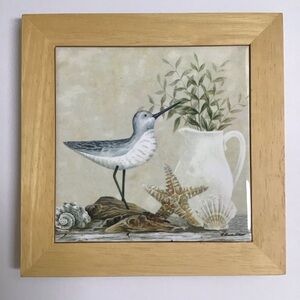 Vintage Diane Arthurs Framed Ceramic Tile Trivet Sandpiper Shells 8x8” Wall Art