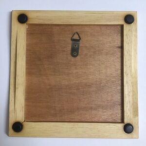 Tile itself is approx. 6” square and the birch or beechwood ? frame is 1” all around—overall dimensions are 8x8”