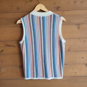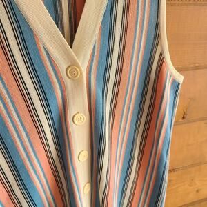 Vintage Diane Crylor 70's Stripe Retro Pastel Bowler Vest Cardigan 42 XL Top