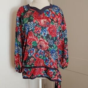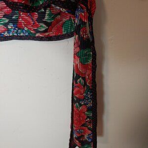 Vintage Diane Freis Beaded Bubble Top Waist Sash Floral Crinkle Satin Boho