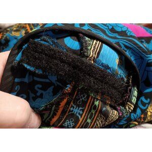 It does not have a size tag but based on the measurements it is a size large. It does have the soft part of the hook and loop on the inside of the shoudlers where there once was removeable shoulderpads. Please see all photographs as they are part of the description. Shipped with USPS Ground Mail.
