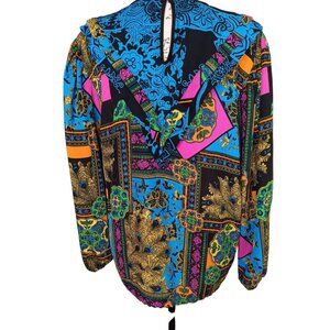 Vintage Diane Freis Large Georgette Blouse, Ruffle, Peacock Paisley Bright
