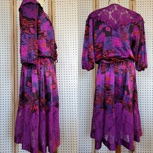 -Vintage Diane Freis Silk 2 Piece Dress Purple Red