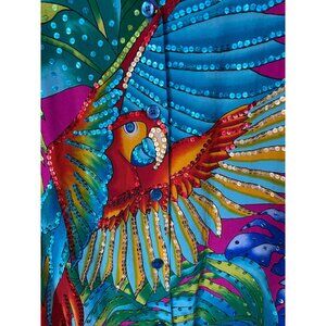 Vintage Diane Gilman 2X Vibrant Parrot & Jungle Sequin Silk Shirt Blouse