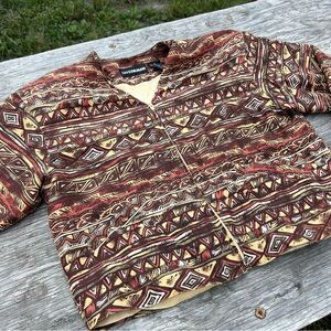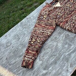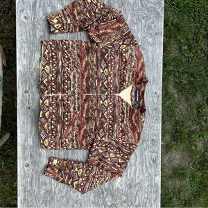 Vintage Diane Gilman 90s Blazer Cropped Zip Jacket Silk Aztec Bomber medium fall