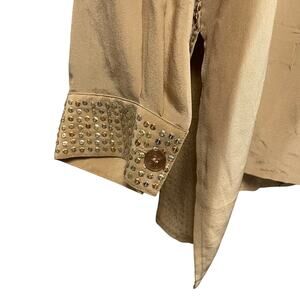 Vintage Diane Gilman Pure Silk Sequin Embellished Button Up Top Gold Womens 1X