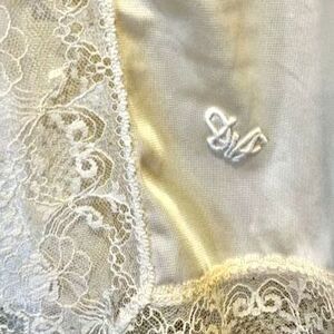 Vintage Diane Von Furstenberg Cream Nylon Lace Hem Half Kick Slip Size Med