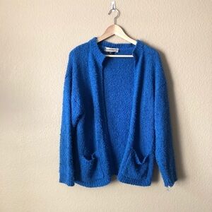 Open cardigan with a textured knit. Two front pockets. Made from acrylic