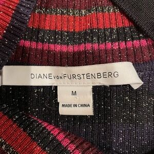 Beautiful turtleneck sweater by Diane con Furstenberg in size M. Buttons on the side of the neck and shoulder. Wool blend with metallic thread. Side M. Great condition.