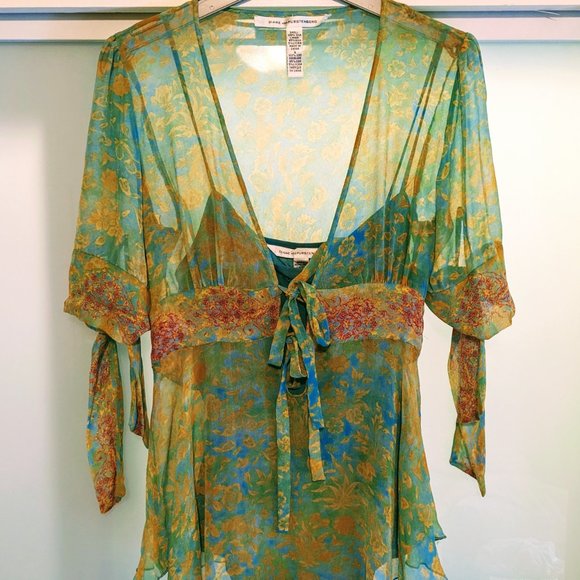 Vintage Diane von Furstenberg 2-piece silk chiffon top