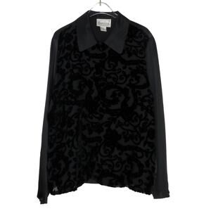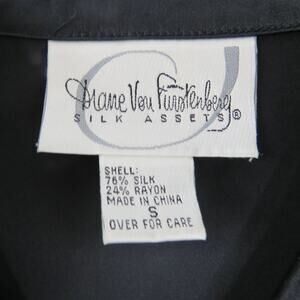 Vintage Diane von Furstenberg Black Baroque Sheer Silk Button Up Blouse Small