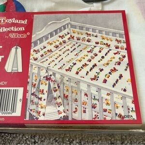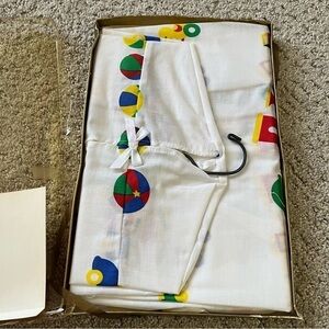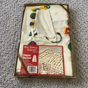 Vintage Diaper Stacker White Beach Balls Toys Hanging Trains Numbers Primary