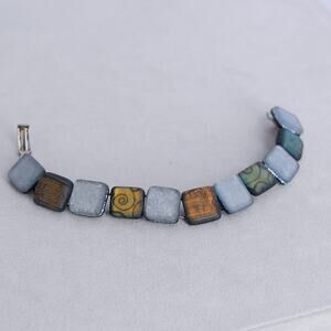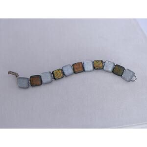Vintage Dichroic Art Glass Square Link Bracelet Iridescent Finish 7"