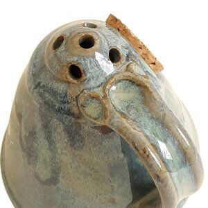 Vintage Dick Lehman Handmade Pottery Sugar Cheese Shaker Cork Handle Blue Glaze
