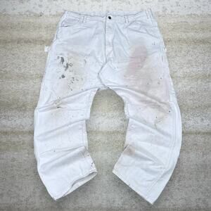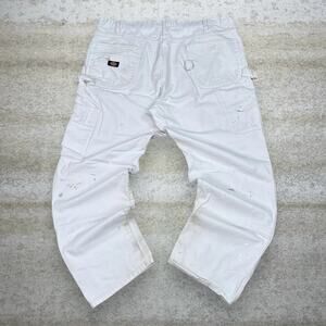 Vintage Dickies Carpenter Pants Snow White Canvas Baggy Wide Leg Dungarees 90s
