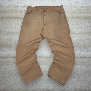 Vintage Dickies Carpenter Pants Tan Canvas Baggy Wide Leg Cotton Red Label 90s