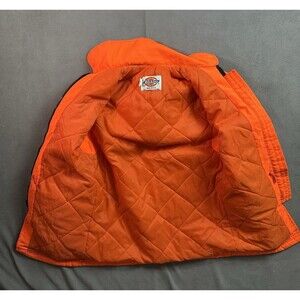 Vintage Dickies Coat Mens Small Made USA Orange Work Quilted Jacket Long Parka