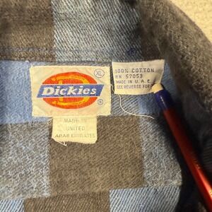 Keywords: Dickies, flannel shirt, plaid shirt, mens shirt, long sleeve, button up, casual shirt, blue flannel, brown flannel, XL shirt, menswear, vintage flannel, workwear, outdoor shirt