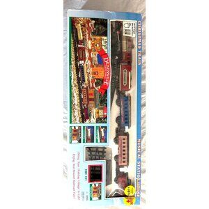 A delightful vintage addition to holiday decor, this train set combines festive charm and functionality.