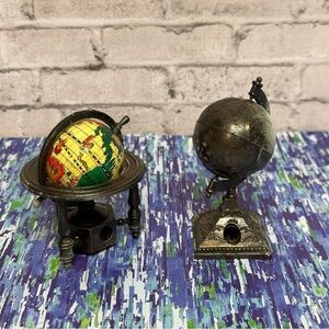 Vintage Die-Cast Pencil Sharpener Set of 2 ROTATING GLOBES