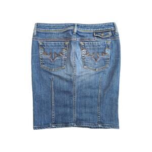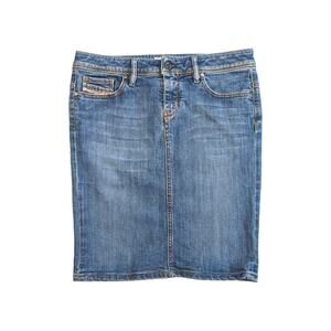 Vintage Diesel Denim Skirt Knee Length Pencil Jean Embroidered Low Rise Womens