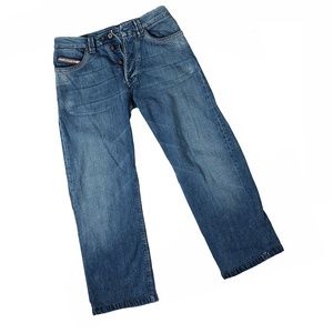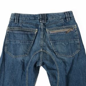 .Back pocket zipped. 100% Cotton. Straight Leg. Preowned in good condition. Size: 29 Inseam: 29 Inch Leg opening: 8 Inch ( 16 )