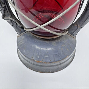 The Monarch model was widely used in the early-to-mid 20th century for railroad and industrial signaling, with red glass typically indicating stop or danger.