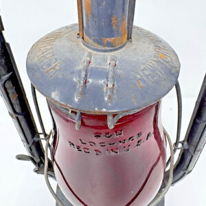 Vintage Dietz Monarch Railroad Lantern Red 64H Fitzall LocNob Globe Gray Painted