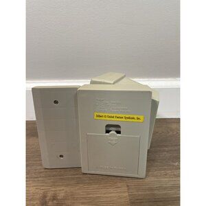 -Classic 90s design with Dilbert comic face as the clock display-Keyboard base & CRT-style monitor casing-Built-in alarm function-Speaker on the back for alarm sound-Size: Small – fits easily on any desk or shelf-Material: Durable plastic-Condition: Good vintage condition with light wear from age/use (see photos)Perfect for fans of Dilbert, collectors of quirky 90s items, or anyone building a retro office setup. A fun gift for tech lovers and cubicle survivors alike.-Ships with care!NOTE: not tested