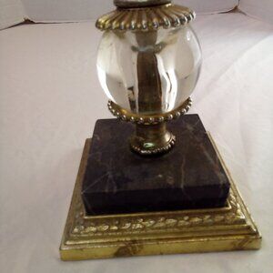 Vintage Dilly Decor Brass Marble Base Glass Ball Made In USA 9" Tall