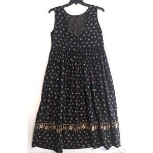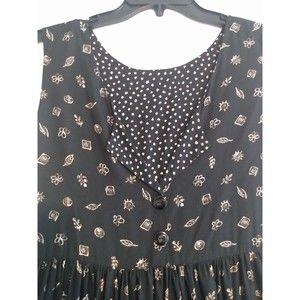 Vintage Dilly's Women's Black 100% Cotton Floral Dress XS Hand Made In USA