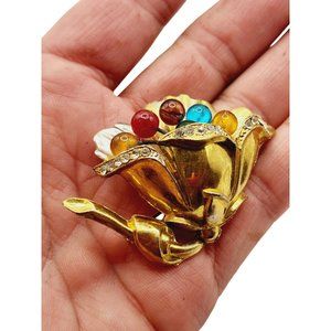 Vintage Dimensional Flower Brooch with Glass Stamens (A500)