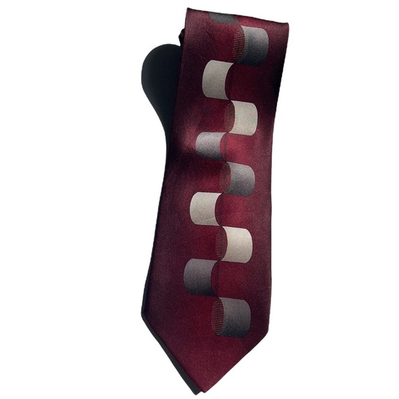 Vintage handmade Dimoggio Gold gray and wine tie. I cool design art graphic. Excellent conditon. Size measurements are shown in the pictures. I measured the lenght with both ends of the tie together. Full lenght measurements should be multiplied by 2
