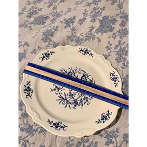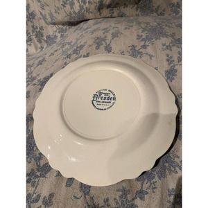 Gorgeous Dresden pattern plate by Homer Laughlin China Do. Beautiful Imperial Blue floral motif with the flowers growing upwards and intertwined. Detailed scalloped rim.