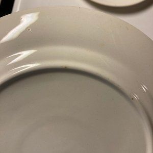 I have no idea how old these are. Please review the pictures closely, one plate is in really good condition, the other has a few issues mostly on the underside.