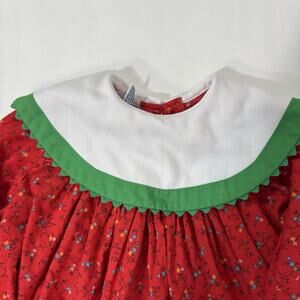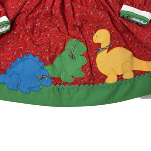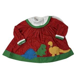 Vintage Dinosaur Dress 3T Youngland Bright Red Green Wide Collar Floral Toddler