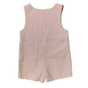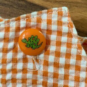 Vintage Dinosaur Orange Gingham Shorts Romper Jumper Checkered Baby Crew 24 M