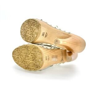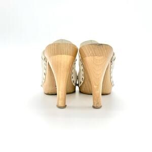 Vintage Dior Floral Embroidered White Leather Wooden Clogs 36.5